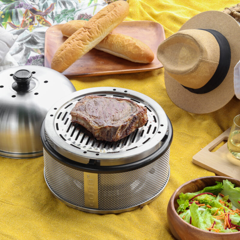De BBQ kit maakt het mogelijk om met de COBB op traditionele wijze te barbecueën. De kit bestaat uit een groot brikettenmandje en een RVS rooster met V-vormige banen.
