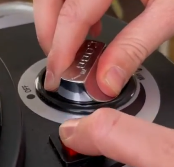 Tijdens het koken kan de temperatuur eenvoudig worden aangepast door aan de knop te draaien.